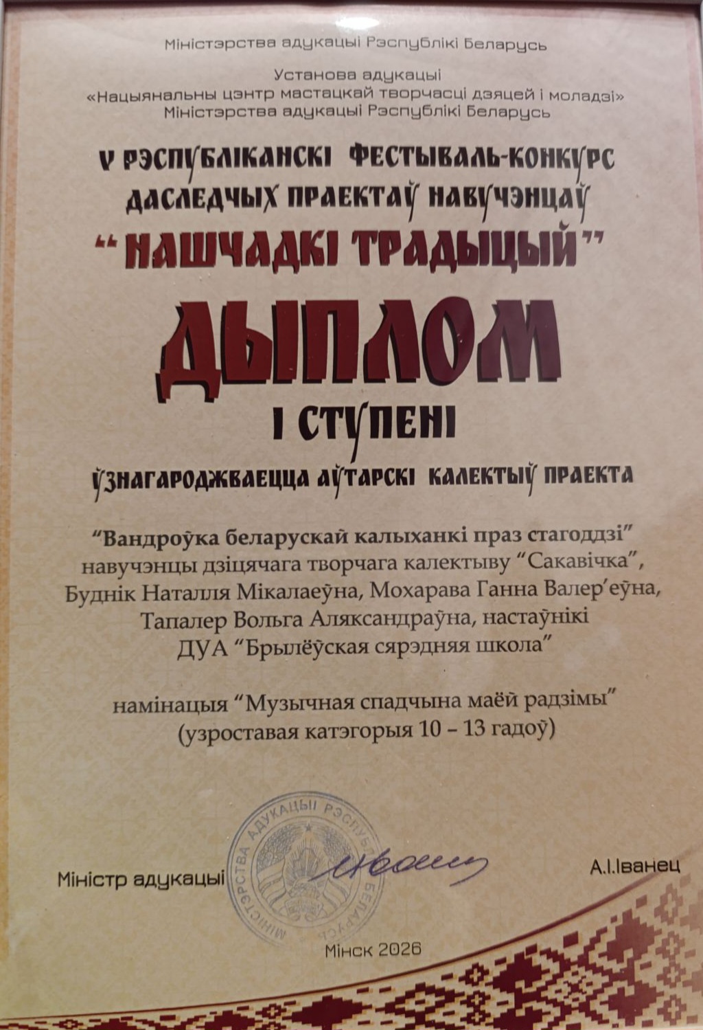 16 и 17 апреля 2026 года в городе Минске проходил заключительный этап 5 Республиканского фестиваля конкурса исследовательских проектов учащихся «Нашчадкi традыцый».