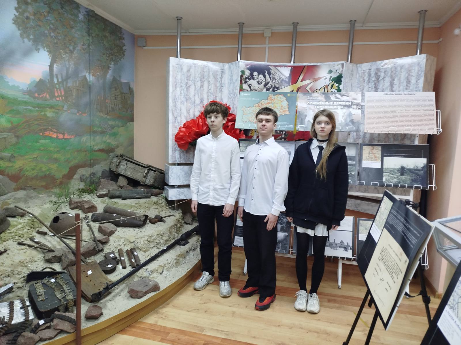 23 апреля 2026 года на базе районного музея в агрогородке Поколюбичи состоялась презентация экспозиции «Вецер часу не развее памяць нашу… Сожжённые деревни Гомельщины», приуроченная ко Дню памяти жертв Хатынской трагедии. На мероприятии присутствовали педагоги и учащиеся Брилёвской средней школы, которые внимательно ознакомились с экспозицией и узнали важнейшие факты о сожжённых деревнях Гомельщины во времена Великой Отечественной войны.